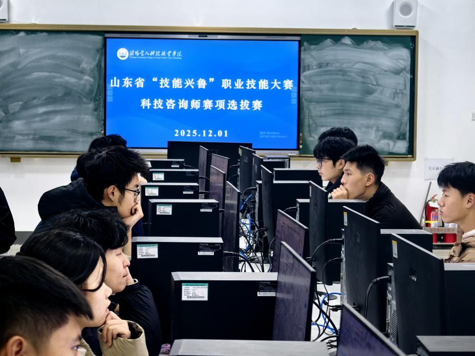 12月1日,山东省“技能兴鲁”职业技能大赛——企业数字化转型咨询(科技咨询师)赛项校级选拔赛在景芝楼B405机房顺利举行。本次选拔采用集中上机考试形式,重点考查学生对科技咨询、数字化转型、技改政策及相关理论知识的掌握程度,为选拔优秀选手参加省级竞赛奠定坚实基础。