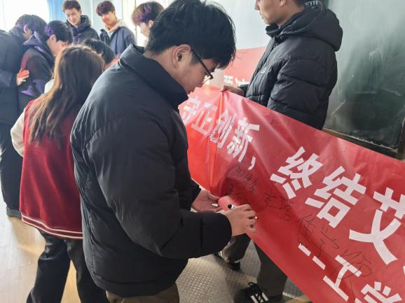 活动过程中,7位同学用一段段美妙的文字,一句句真挚的话语,结合生动的案例,从艾滋病的传播途径、预防措施、社会关怀等多个角度展开演讲。他们有的分享了对艾滋病患者的理解与尊重,呼吁消除歧视,以同理心给予这一特殊群体更多理解与支持,让科学防护与人文关怀在校园中同步传递。有的聚焦青年群体的责任担当,强调树立健康生活理念、拒绝高危行为的重要性。演讲现场气氛庄重而热烈,师生们认真聆听,不时响起热烈的掌声,眼神中充满了对知识的渴求与对生命的敬畏。随后,同学们怀着饱满的热情,有序地走到宣传横幅旁边,依次在宣传横幅上郑重地签下自己的名字。密密麻麻的字迹承载着青年一代对健康校园的向往和对社会责任的担当。