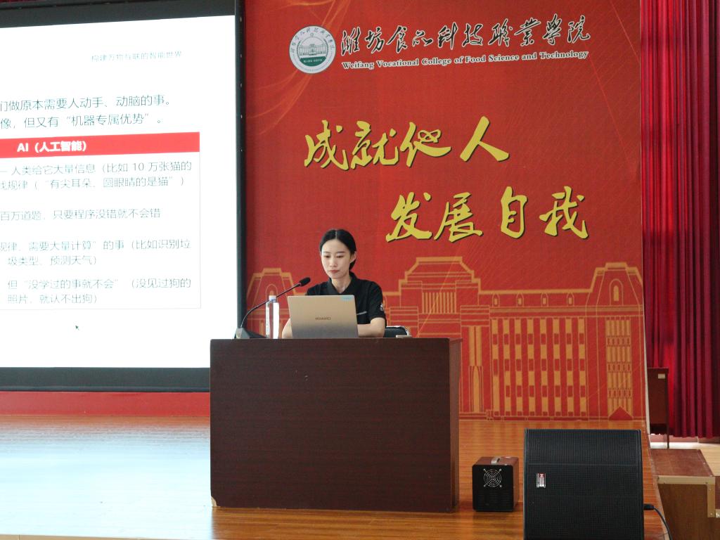 为积极响应教育数字化转型的时代号召,推动人工智能技术与职业教育深度融合,进一步提升教师数字素养与教学创新能力,9月25日下午,我校特邀山东云小华赋能讲师陈秀青女士在景芝楼报告厅开展AI数字人进校园赋能教育公益活动。本次讲座由学校常务副校长李保城主持,部分教师参加。