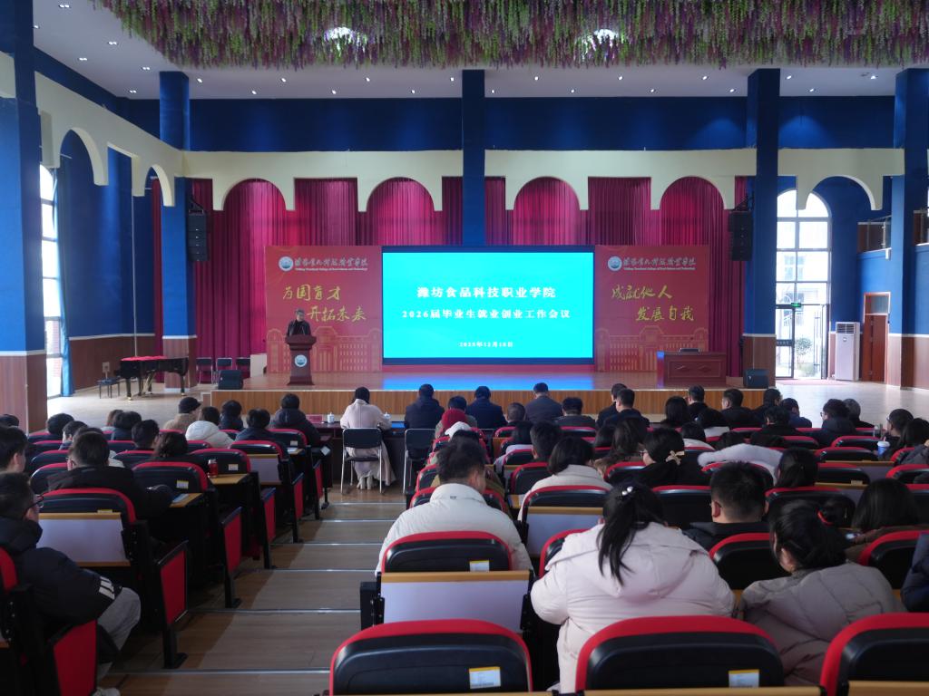 为深入贯彻落实全国高校毕业生就业创业工作相关部署,精准谋划、扎实推进我校2026届毕业生就业创业各项工作,全力保障毕业生高质量就业,12月18日,我校在报告厅召开2026届毕业生就业创业工作会议。学校党委书记肖明胜出席会议,党委副书记、校长亓俊忠出席会议并讲话,副校长田敬成主持会议,全体校领导,相关职能部门、二级学院负责人及教师代表参会。